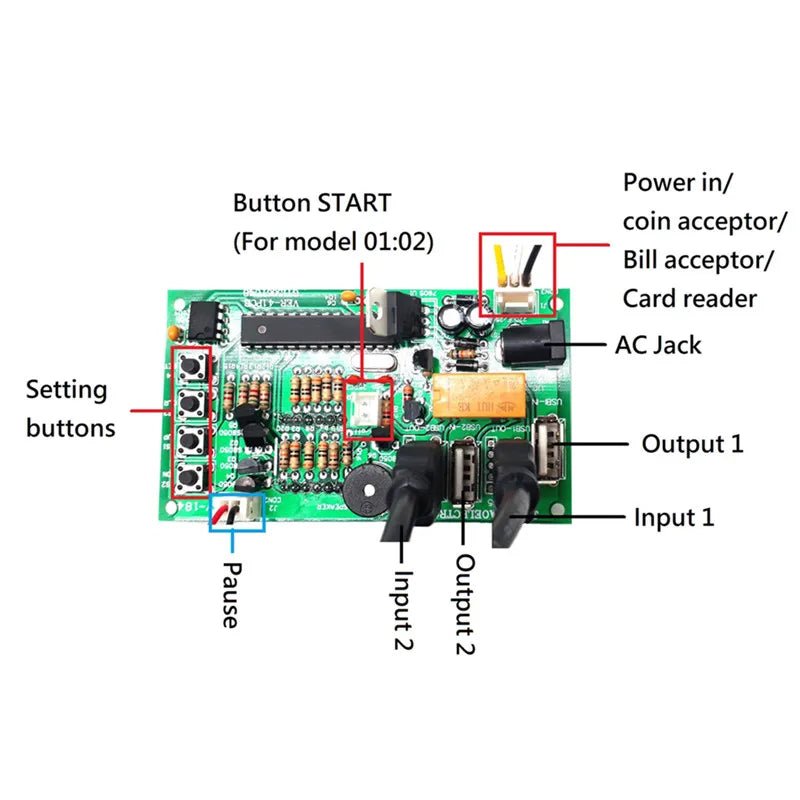 JY-18A coin operated USB time control Timer Board Power Supply for coin acceptor selector device, USB devices, etc…